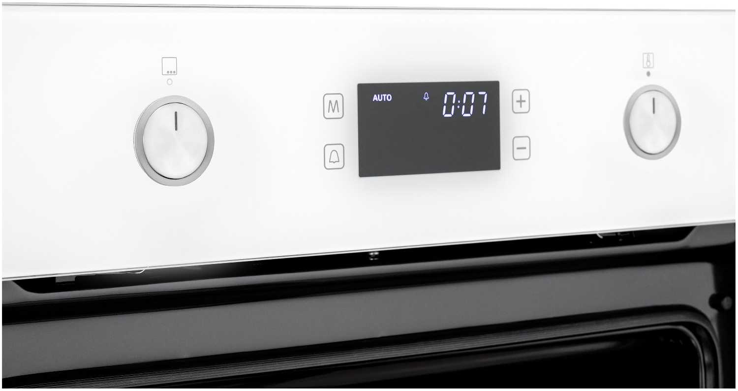 Отличный духовой шкаф, по демократичной цене. Куча режимов, утапливаемые ручки, таймер, интересное управление и наглядный дисплей при готовке. Мелочи для удобства: выставление температуры с шагом в 5 градусов. Индикация степени разогрева ( шкала наполнения на дисплее ) и звук при разогреве духовки. Звуковое оповещение по окончании приготовления ( по Таймеру ). После готовки на дисплее отображается надпись "Hot" , и пока шкаф не остынет надпись горит, приятные ФУНКЦИОНАЛЬНЫЕ мелочи))) Раннее с таким не сталкивалась, поэтому для меня это новшество. Шкаф нам очень понравился!!! Спасибо производителю!