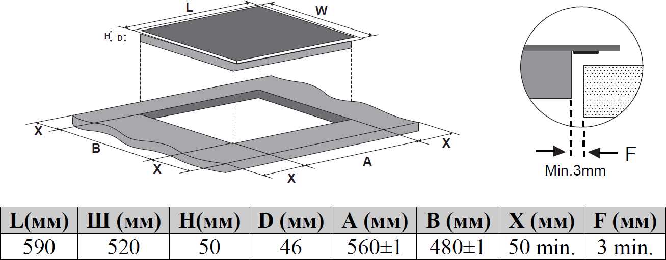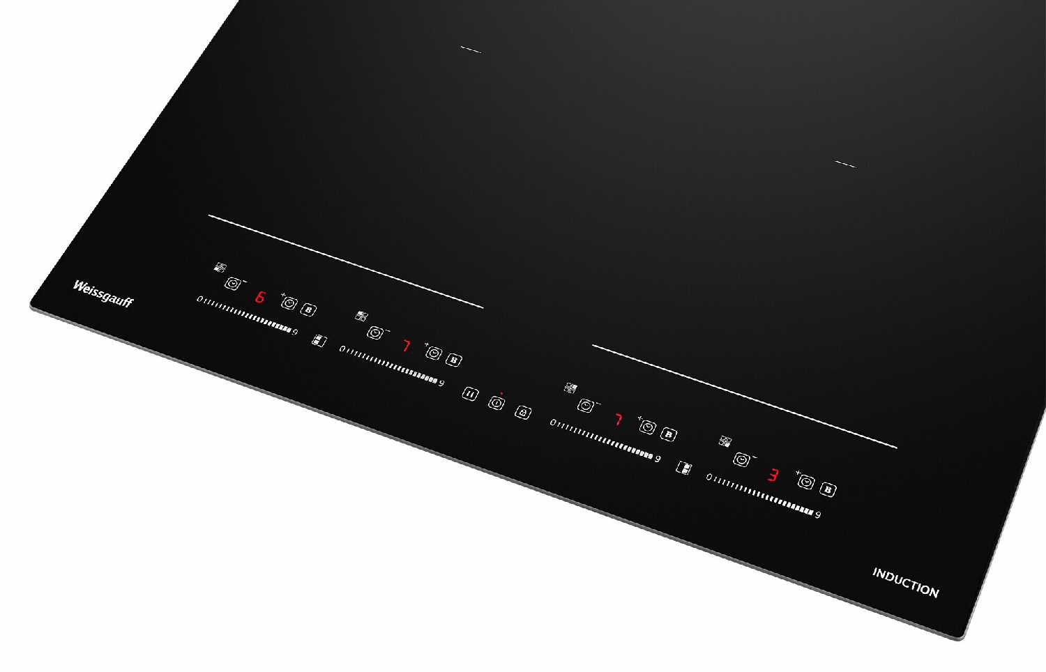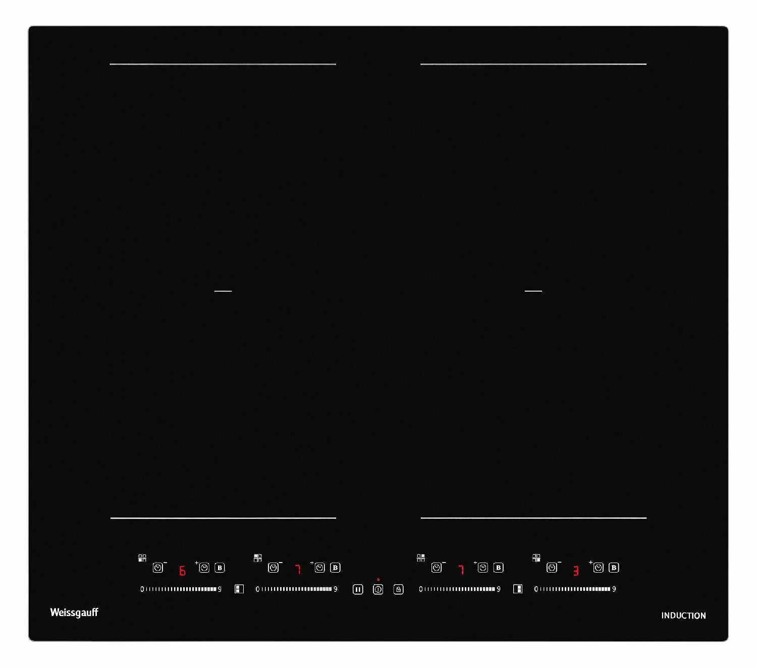 - Безразмерные конфорки расширяют возможности, зоны без крестиков выглядят стильно.