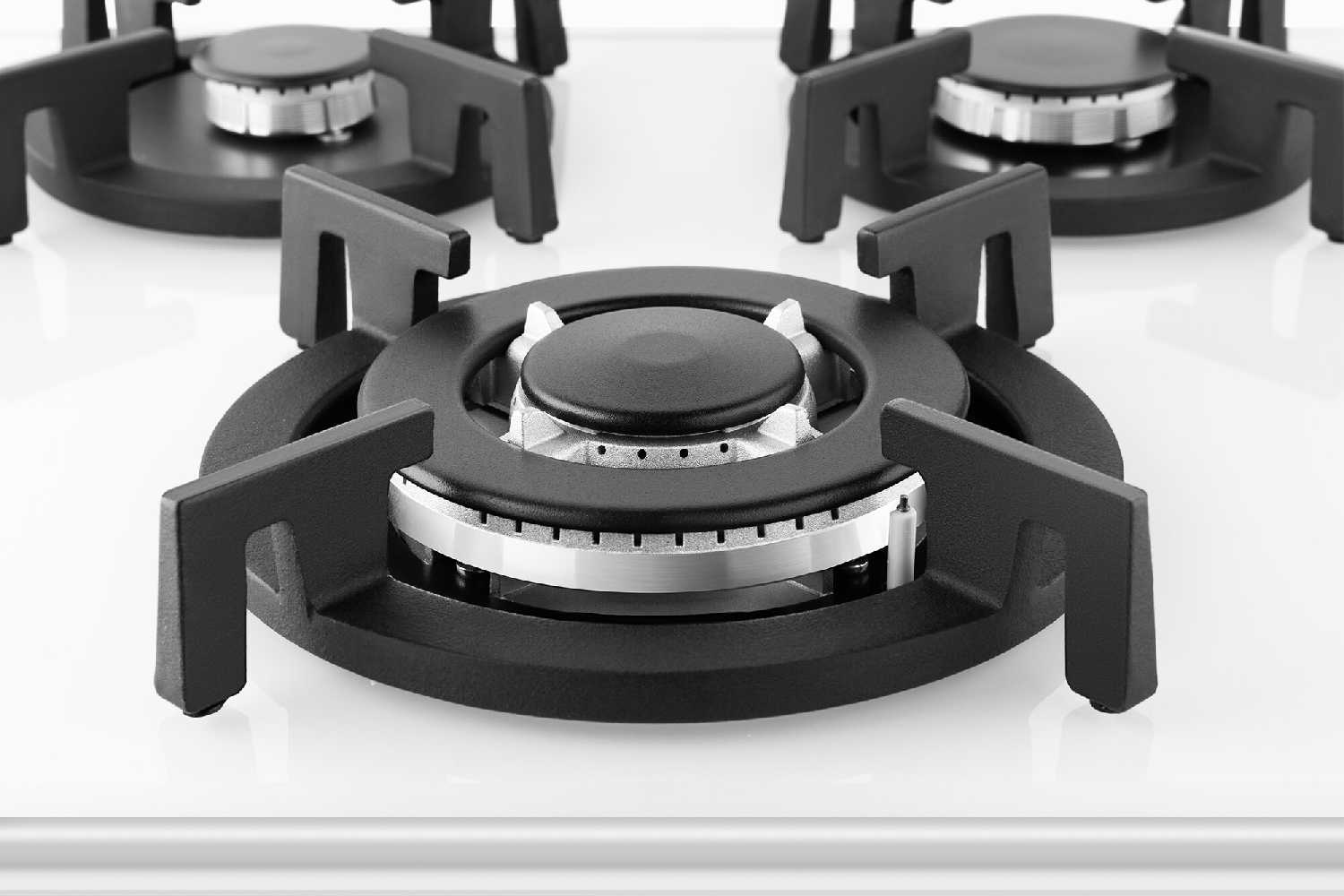 - Равномерное распределение пламени нагревает посуду на 20% быстрее стандартных конфорок, подтверждено тестами на варенье и супы.