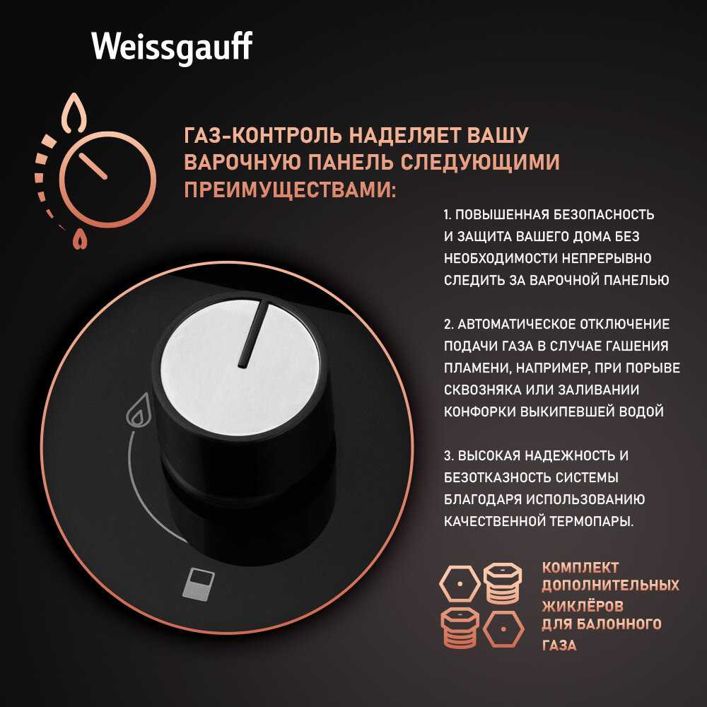 - Система газ-контроля блокирует утечку газа, предотвращая аварии, особенно важно при наличии детей.