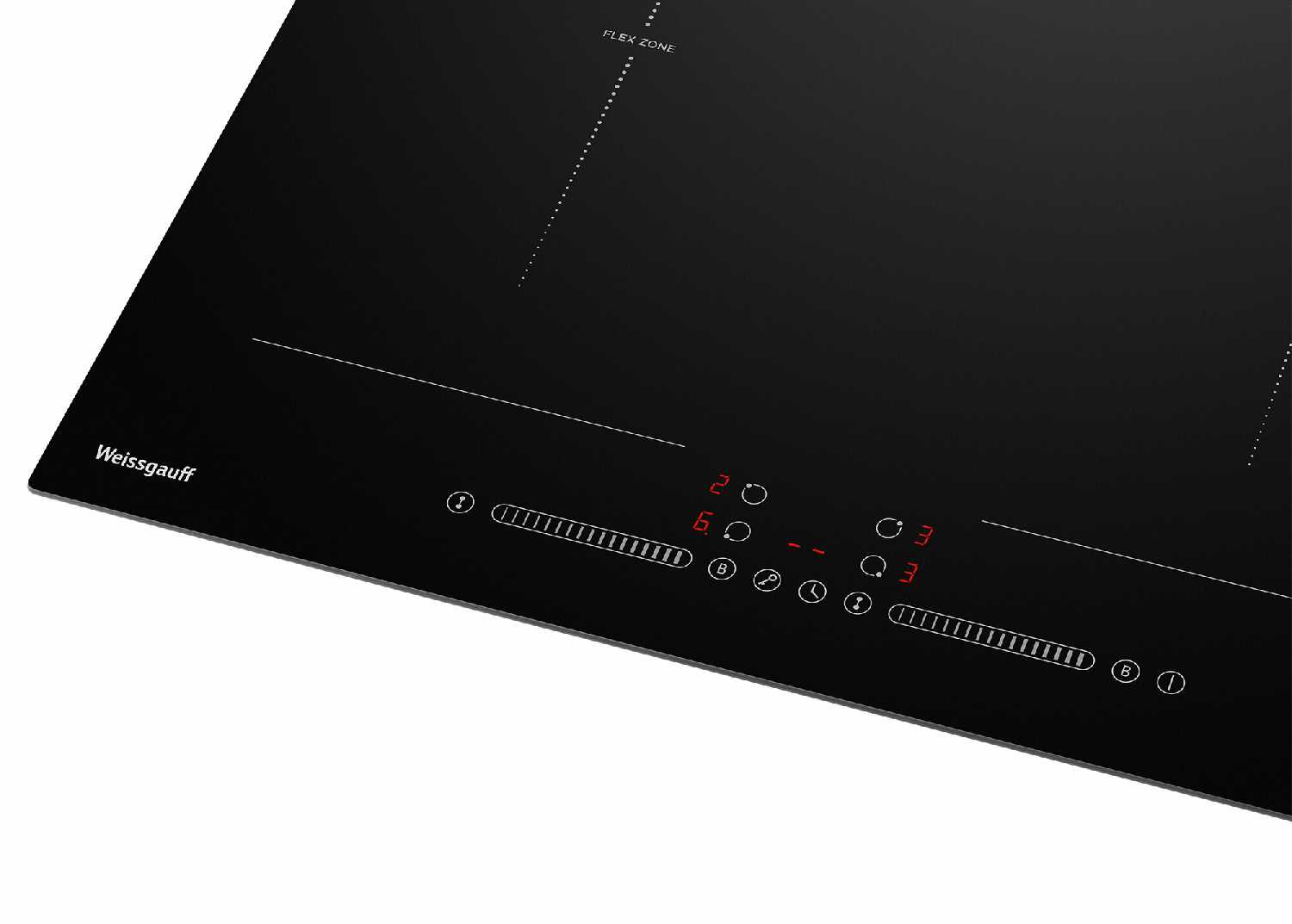 • Flex Zone- это инновационный дизайн индукционных конфорок, обеспечивающий максимальную свободу в процессе приготовления пищи для использования посуды любого размера.