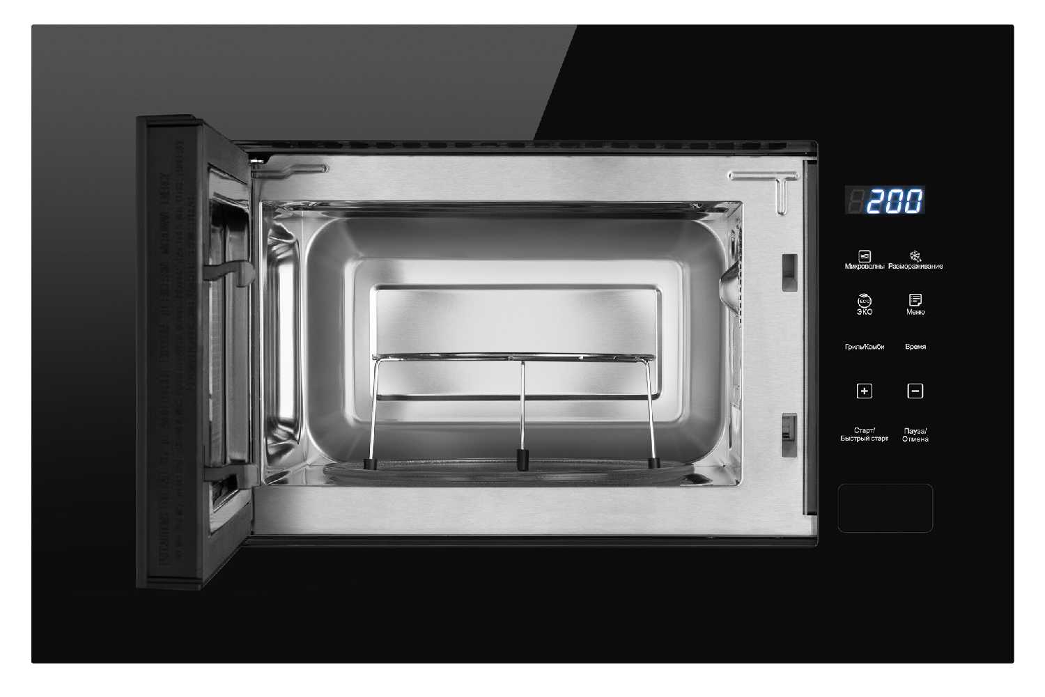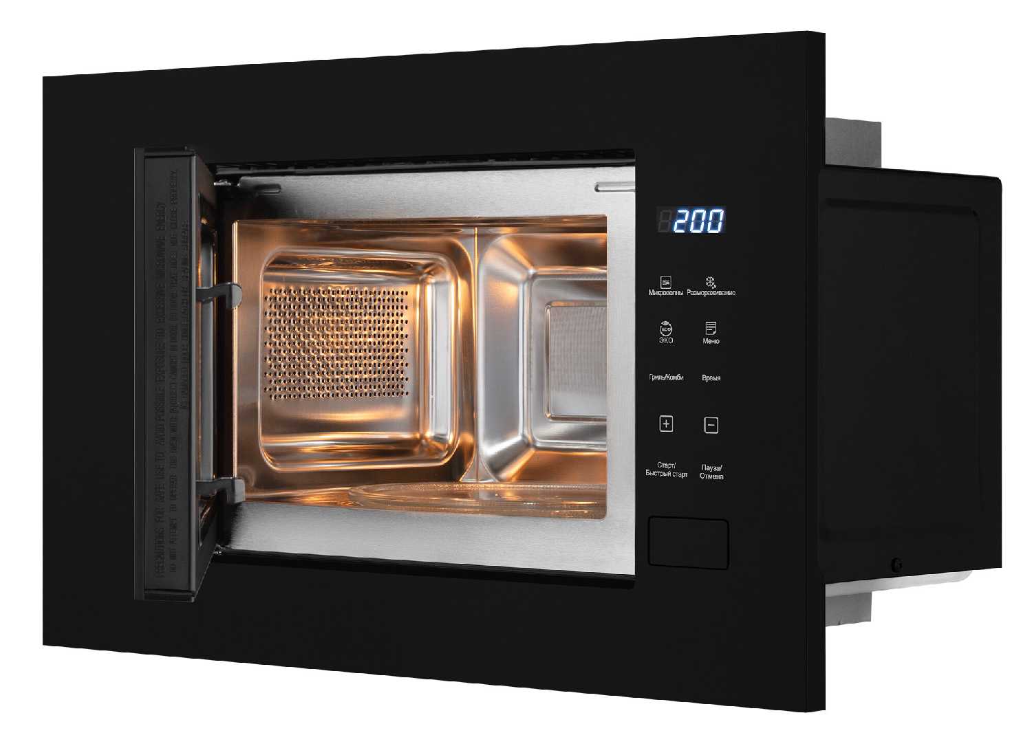 хорошая китайская микроволновка, без вращающегося стола, это очень удобно, греет быстро и равномерно. не очень удобно сброс времени, если нужно закончить разогрев раньше, нужно держать кнопку, а так нормальная мкв, и неудобна для встройки в нишу верхнего шкафа, горизонталь, её кромка будет видна, нельзя опустить чтобы его перекрыть, я встроил в пенал, там всё четко