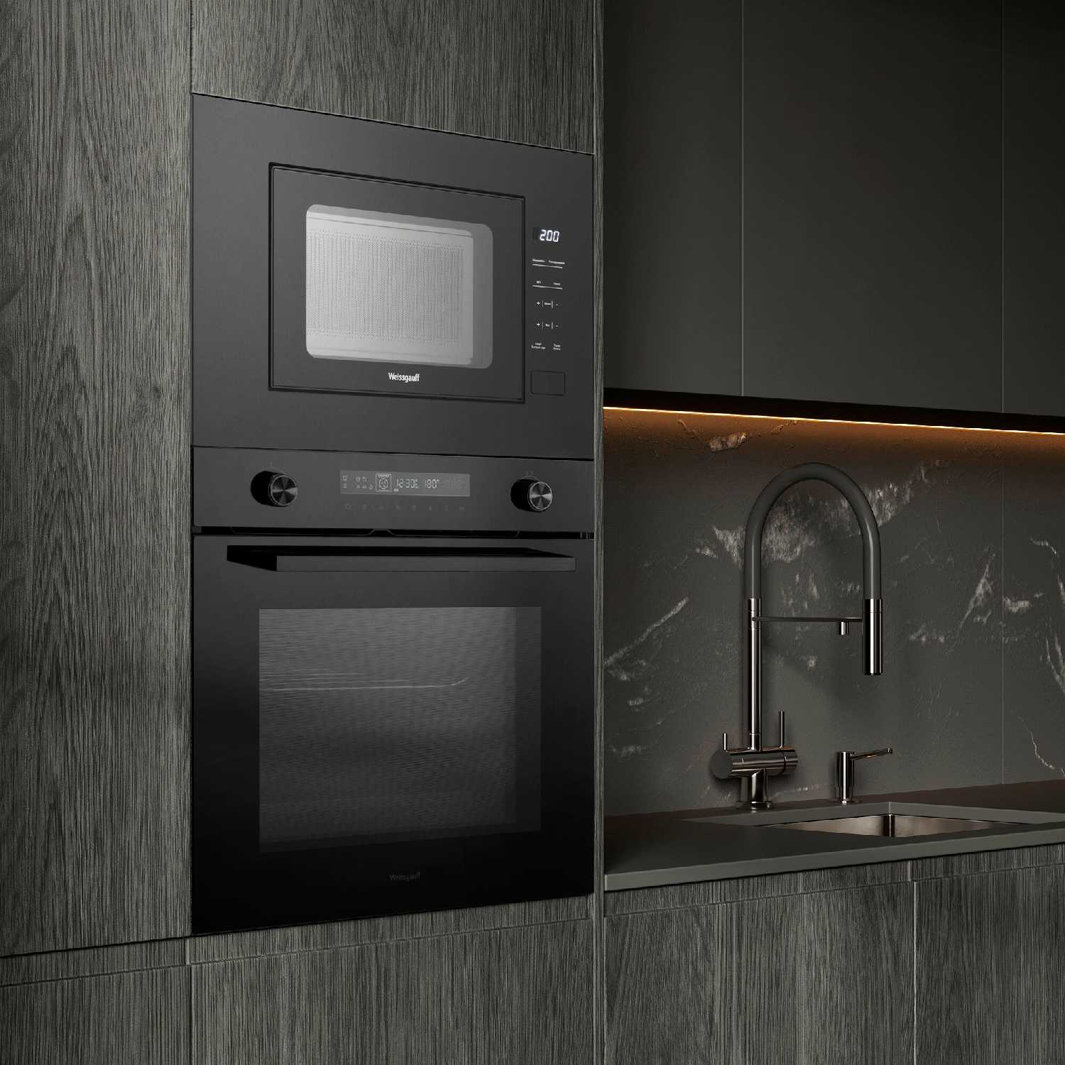 Брали комплект с духовым шкафом, вытяжкой и посудомоечной машиной, все одного бренда. На фото видно как получилось в итоге. Микроволновка всем устраивает, со своими задачами справляется. К покупке рекомендую.