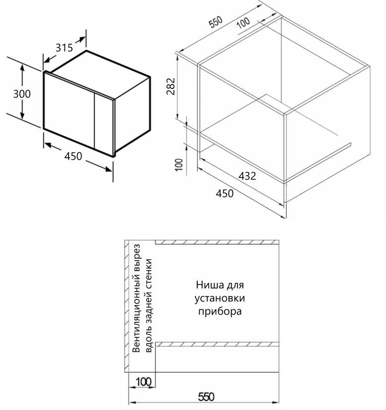 - - в стандартную нишу из ЛДСП не влезет, это конечно минус, поэтому размер шкафа и ниши должен быть индивидуальный под конкретно эту микроволновку