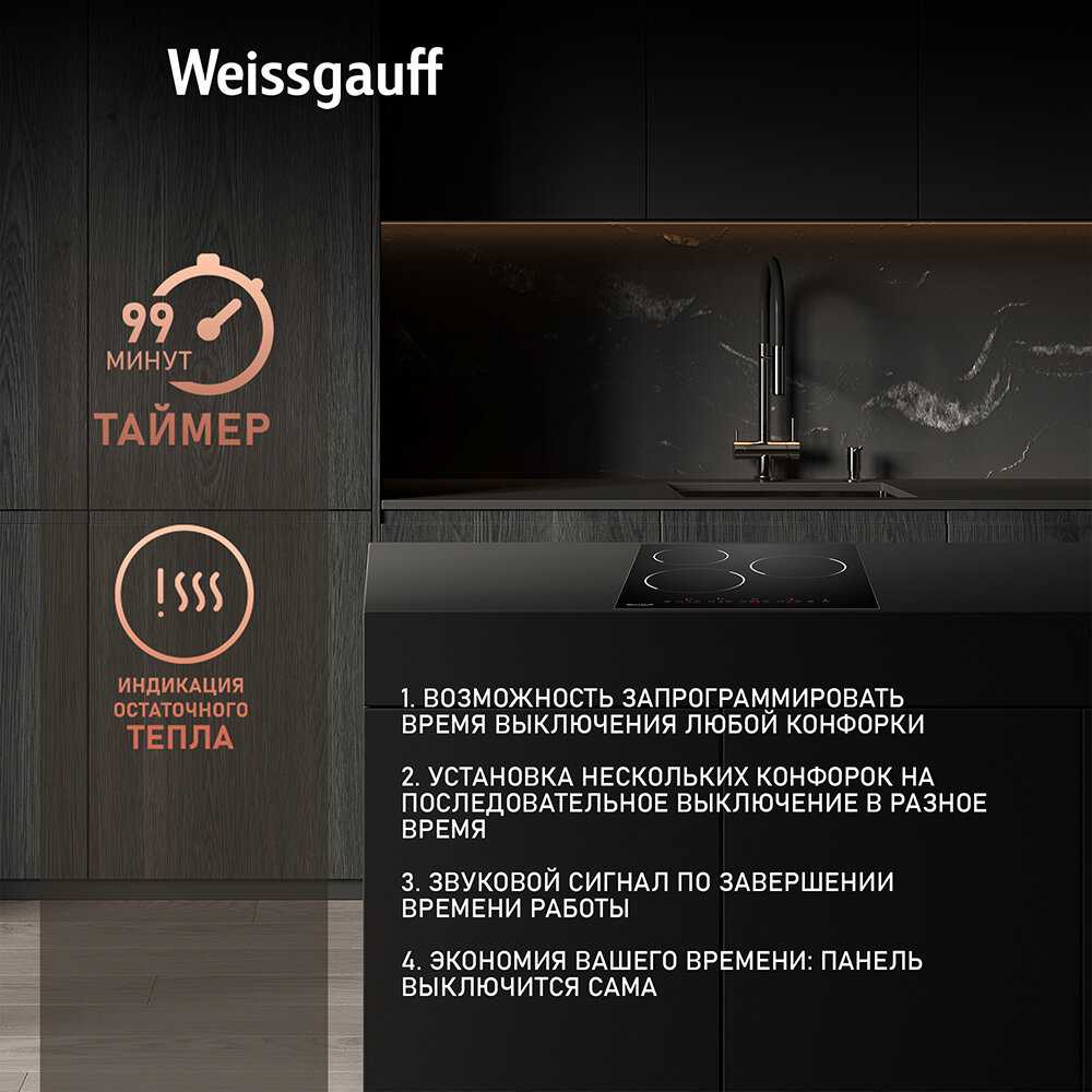 Таймер позволяет задать время отключения для каждой конфорки индивидуально. По окончании срабатывает звуковой сигнал. Пользователи ценят эту функцию за автономность — можно заниматься другими делами, не контролируя процесс. Реализация интуитивно понятна даже новичкам.