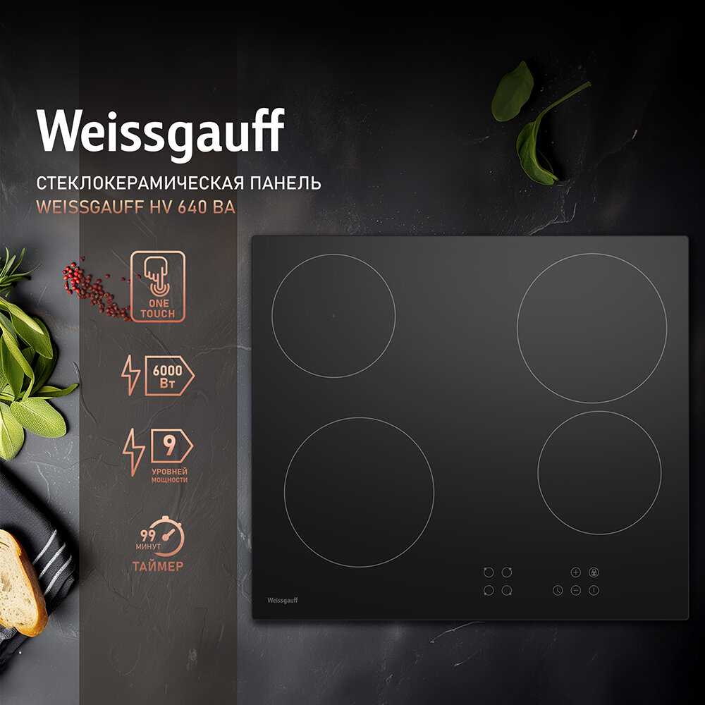 В целом, варочная панель Weissgauff HV 640 BA является отличным выбором для тех, кто ищет надежное и стильное решение для приготовления пищи. Она сочетает в себе функциональность, безопасность и современный дизайн, что делает её популярной среди пользователей.