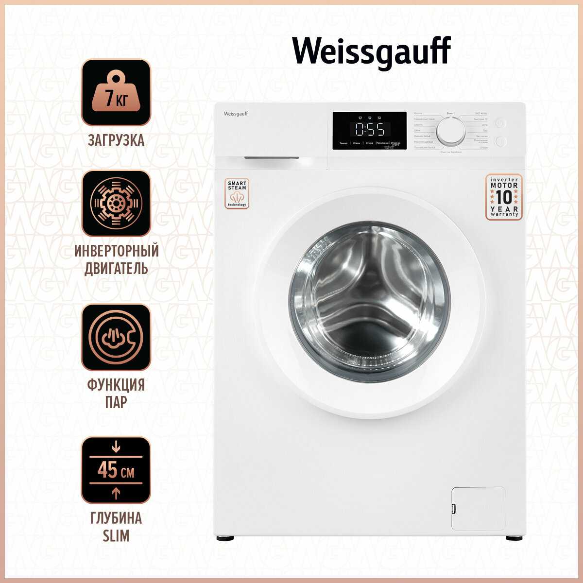 Обзор Weissgauff Inverter Steam Touch (WM 45127) - мнение пользователей*:
