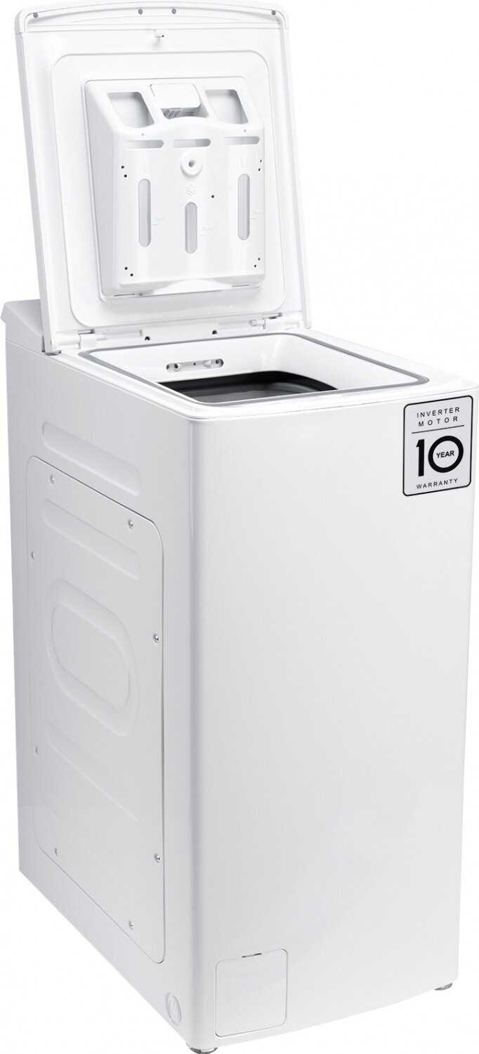 Вместимость до 8 кг белья! Вертикальная загрузка. Устойчивая при стирке и отжиме инверторный двигатель.