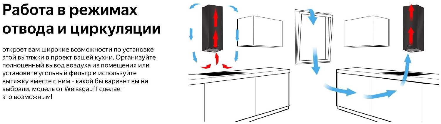 - режим работы: отвод / циркуляция воздуха