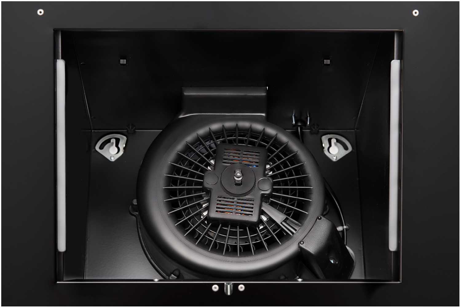 Мощность, производительность, светодиодное освещение. Все в ней нравится, плюс, конечно, внешне интересная. А еще наклонная форма удобна, вытяжка не мешается при готовке.