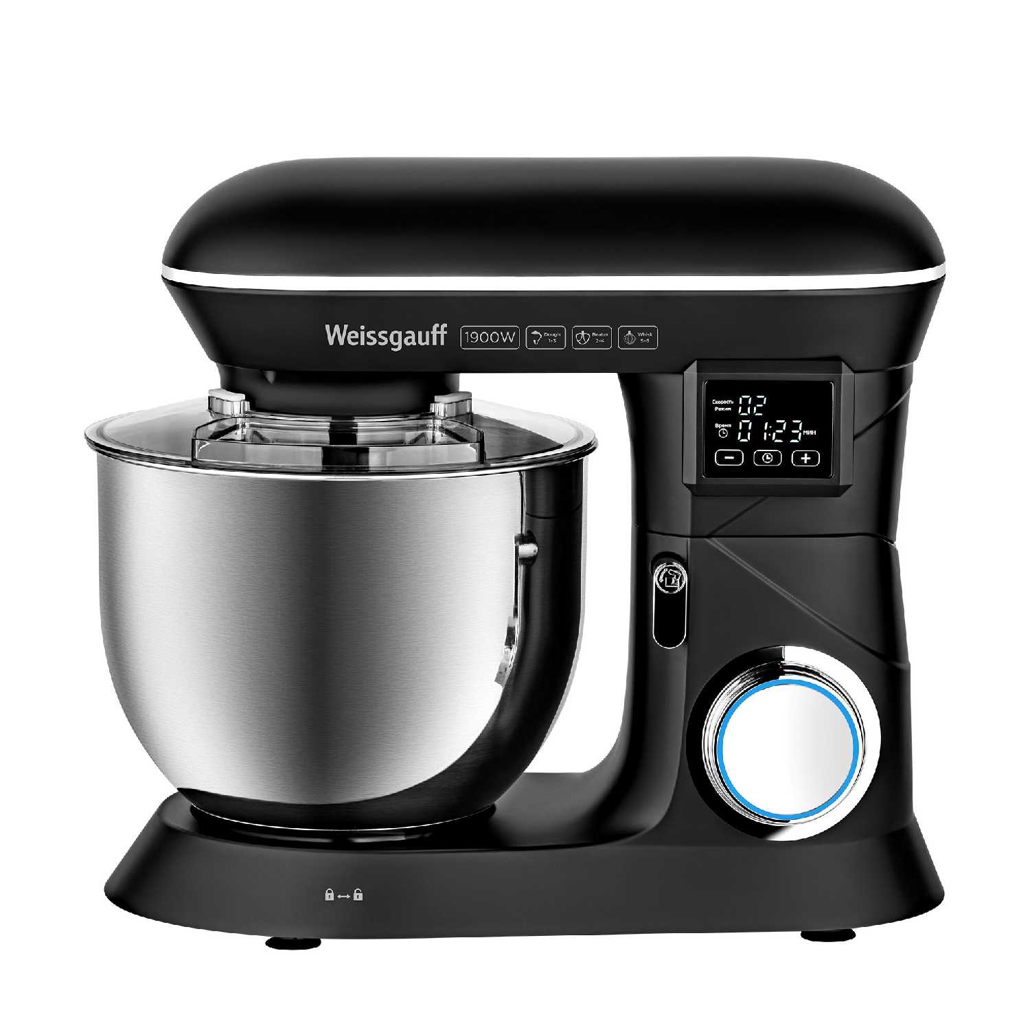 - Глубокая металлическая чаша объемом 6,5 л предотвращает разбрызгивание ингредиентов.