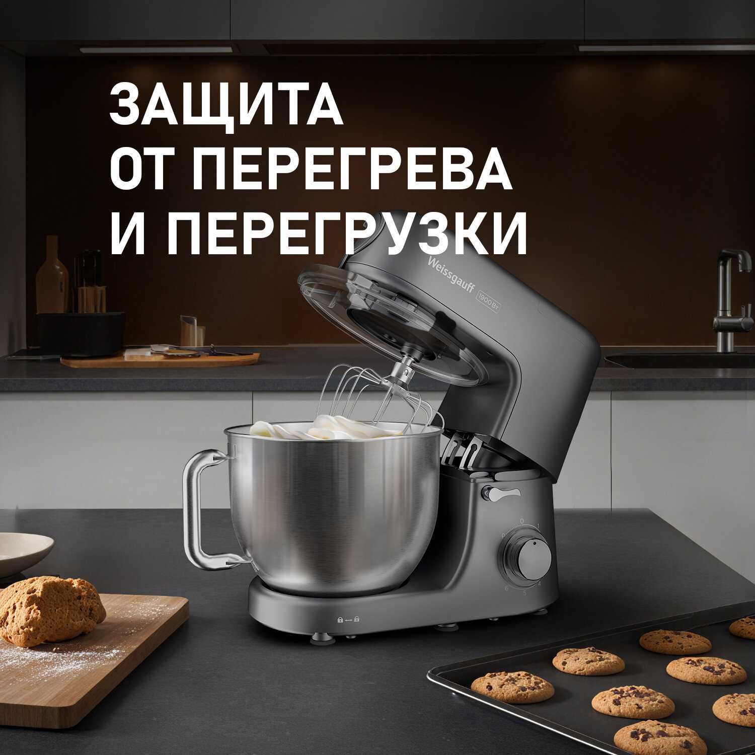 - Мощный двигатель легко справляется с замешиванием плотного теста, включая хлебное, обеспечивая однородную и хорошо вымешанную консистенцию.