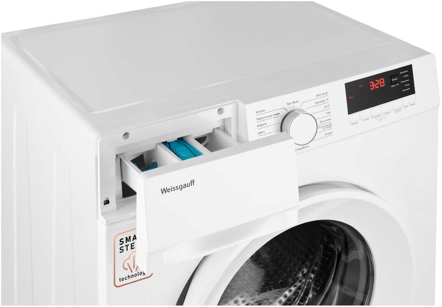 - Функция Smart с автоматической оптимизацией параметров стирки: