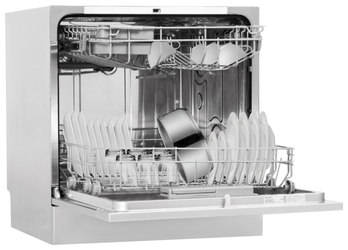 Удобная, хорошо отмывает, шумит в меру, хватает на семью из 4 человек, кастрюли, сковородки влезают хорошо, тарелки и чашки тоже
