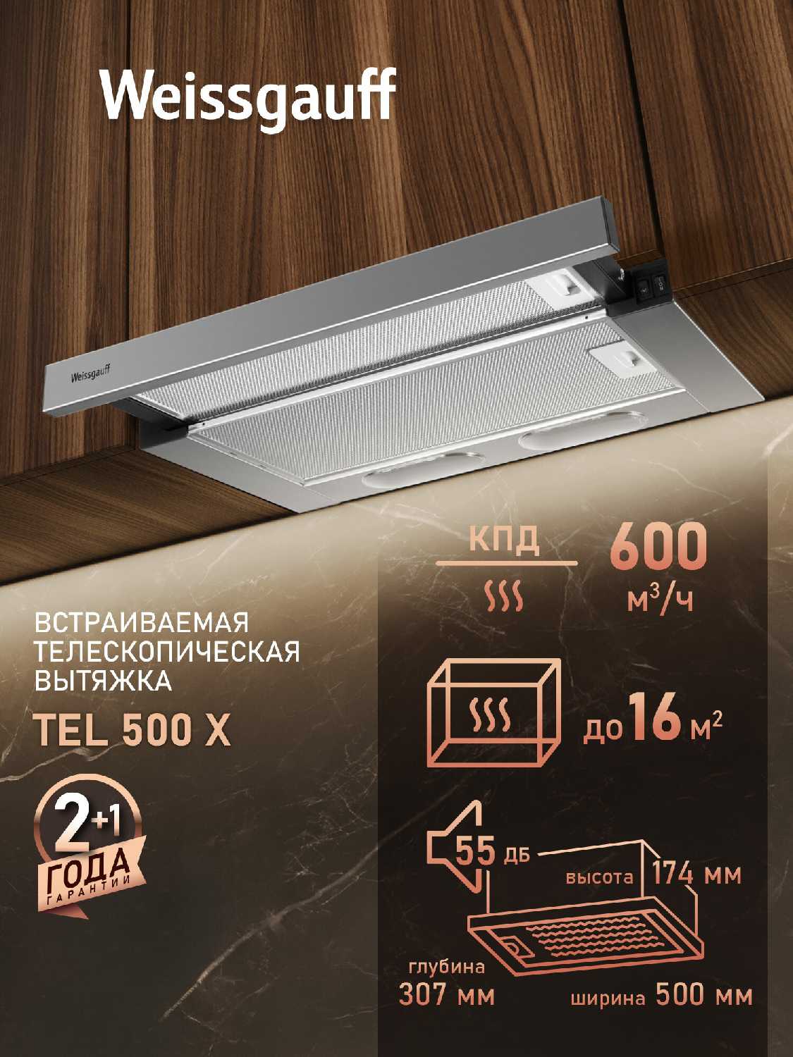 - + Хорошая вытяжка. Тянет мощно. Лампочки в комплекте, но заменили на светодиодные. Отлично вписалась в новую кухню.