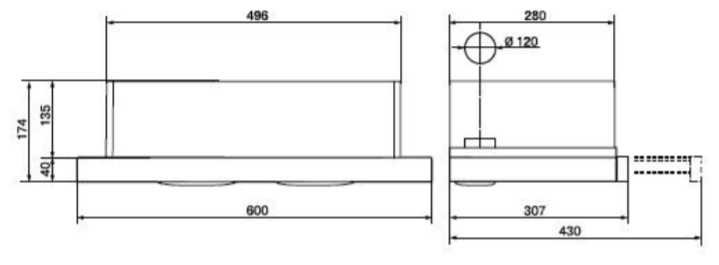 - Толщина корпуса 30–40 мм позволяет полностью скрыть вытяжку в шкафу, оставив видимой только рабочую панель.