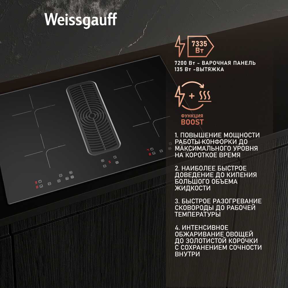Купила варочную со встроенной вытяжкой, так сказать два в одном. Смотрится все очень круто и дорого, в работе как обычная индукционная варочная панель только с вытяжкой. В уходе простая, вытяжка мощная и тихая. Готовит быстро и по настройкам управления понятная, сенсор отзывчивый и моментально реагирует на регулировку.