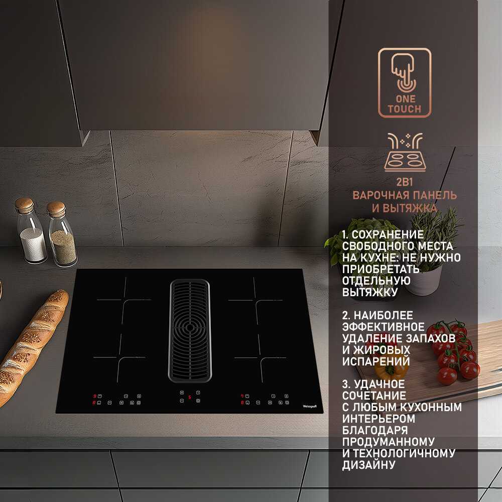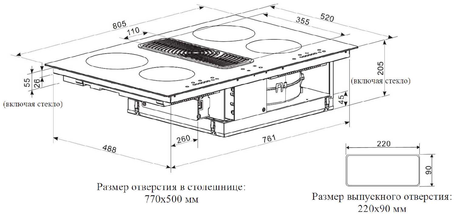 - + Широкая варочная поверхность, простая в управлении, вытяжка работает идеально, мощная