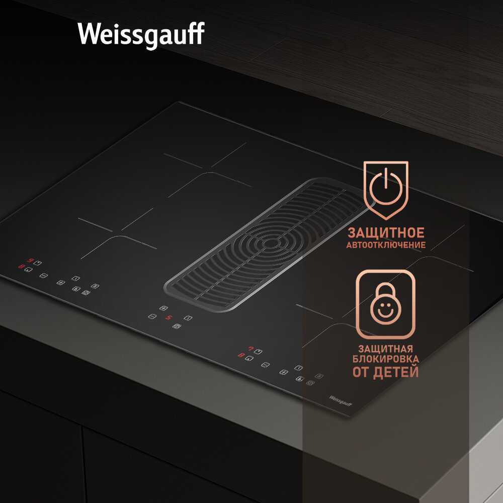 Безопасность : | защитное отключение конфорок, кнопка блокировки панели |