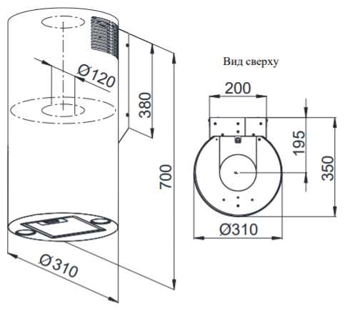 - Диаметр 30 см позволяет монтировать вытяжку даже при боковом расположении газовых труб.
