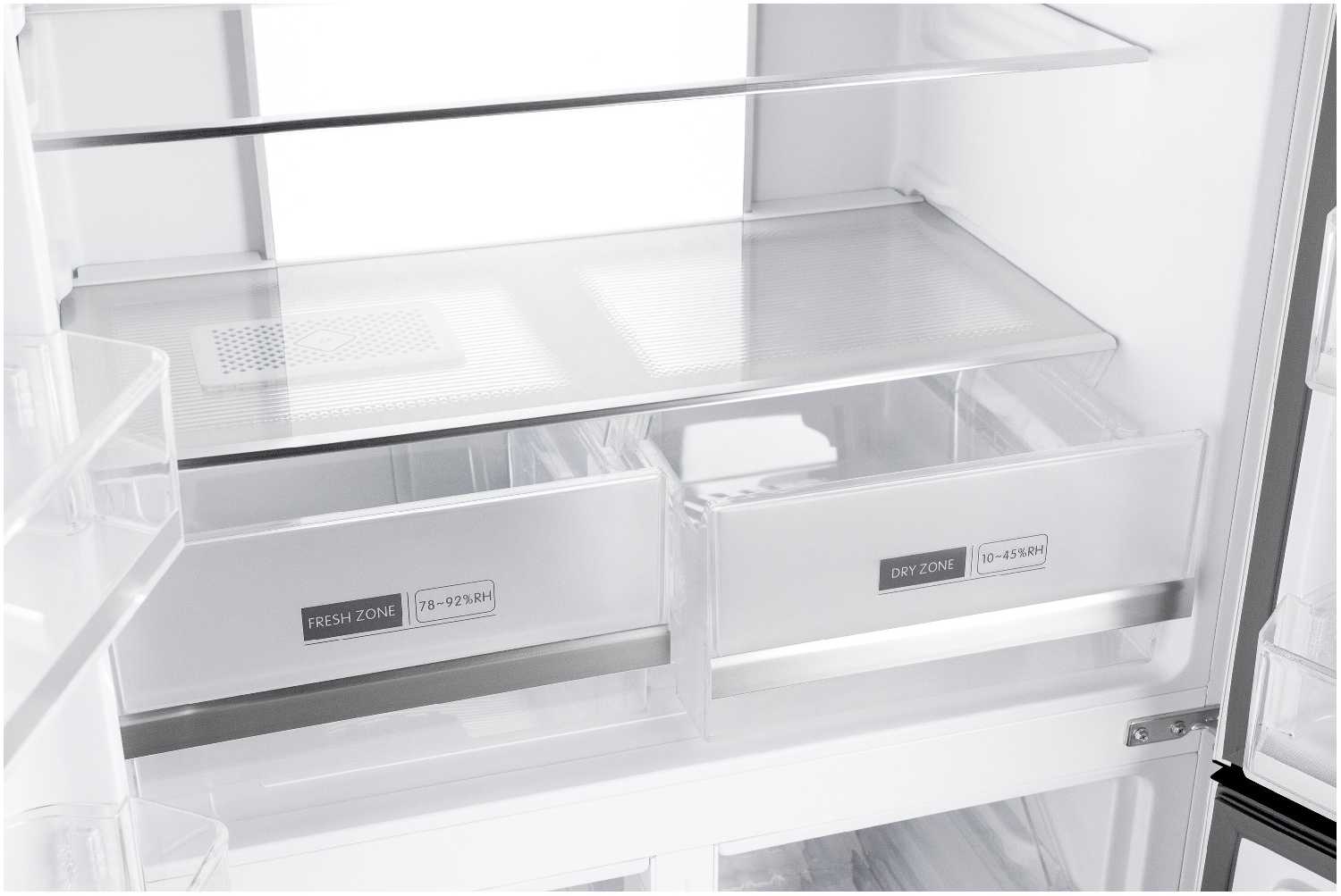 Модель оснащена гибкой зоной свежести, температуру в которой можно регулировать в широком диапазоне (примерно от +5°C до -20°C), позволяя использовать ее как для охлаждения, так и для мягкой заморозки. Это идеально для хранения свежего мяса, которое не планируется готовить сразу, рыбы или сезонных ягод. Пользователи подтверждают, что продукты в этой зоне сохраняют свежесть значительно дольше. -
