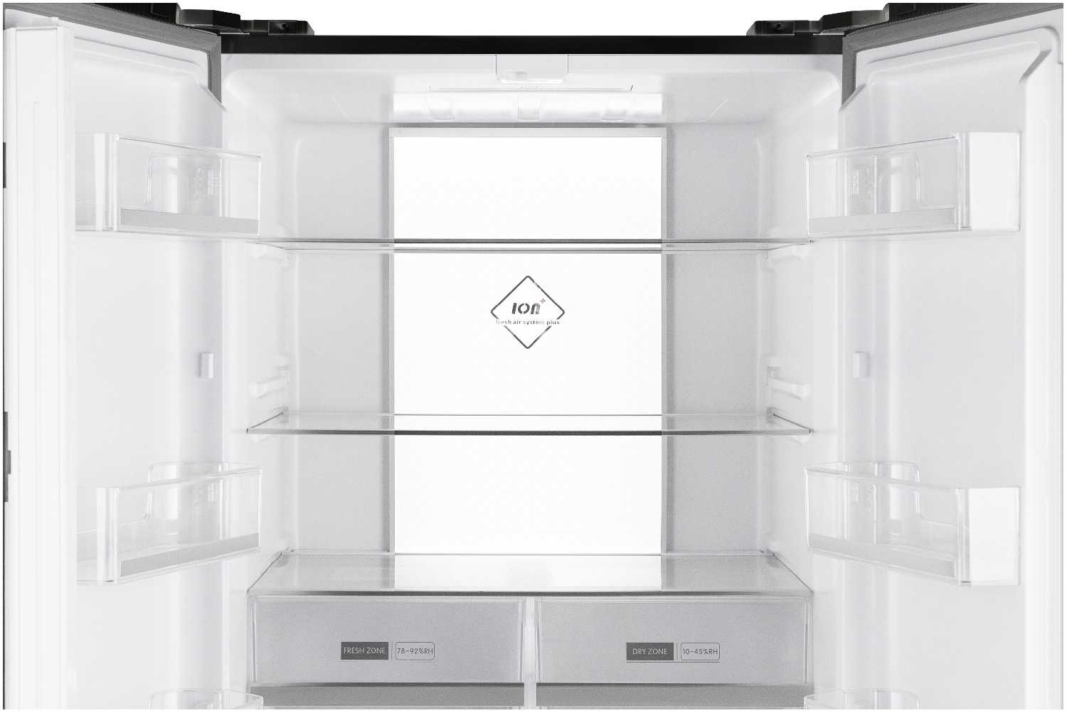 Четыре независимые дверцы — ключевое преимущество, позволяющее открывать только нужное отделение, минимизируя потери холода и поддерживая стабильный температурный режим. Это особенно удобно для частого доступа к продуктам, так как не нужно открывать весь холодильник целиком. Пользователи отмечают, что это значительно экономит электроэнергию и продлевает свежесть продуктов. Эргономика доступа высоко оценена в отзывах. -