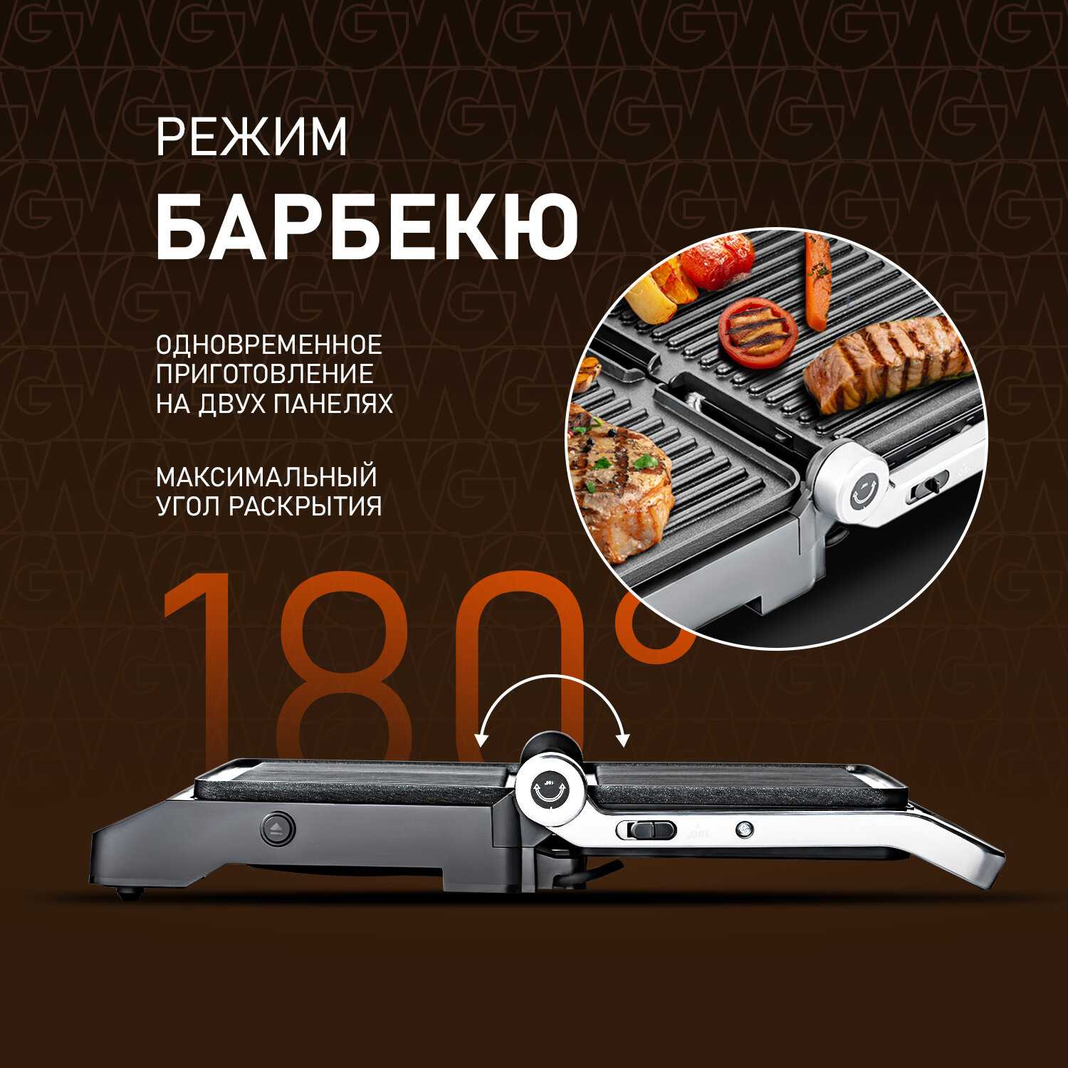 - Режим раскладывания на 180° позволяет использовать устройство в качестве гриля для барбекю.