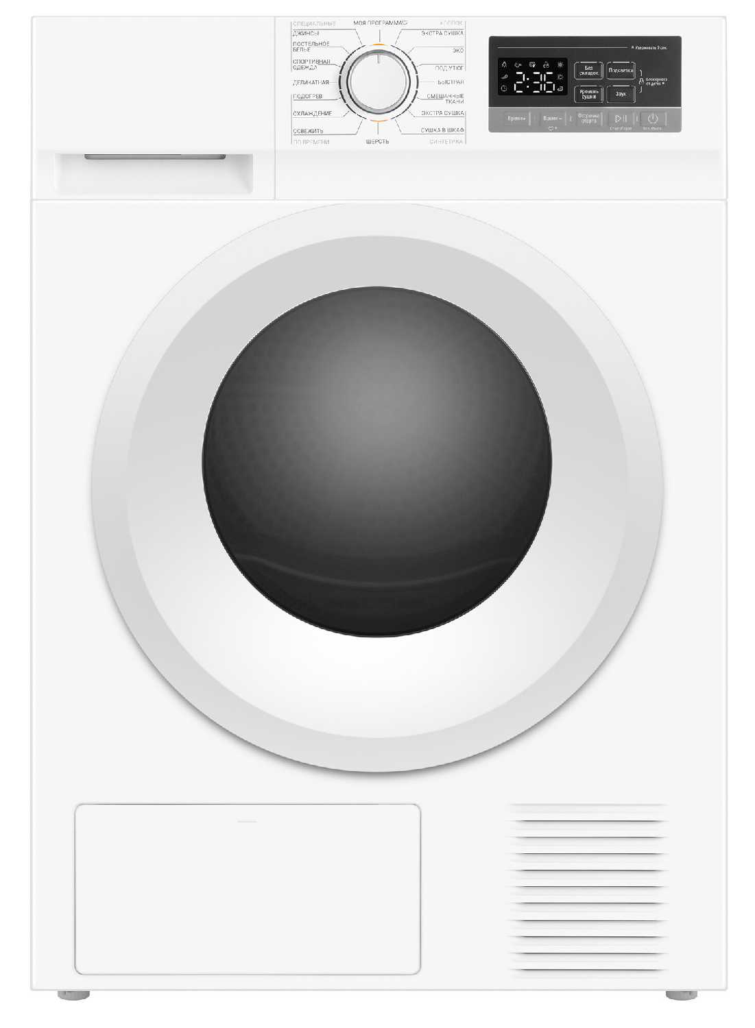 - + Отличная сушильная машина! Вместительная, сушит быстро и качественно, вещи мягкие и без лишней влаги.