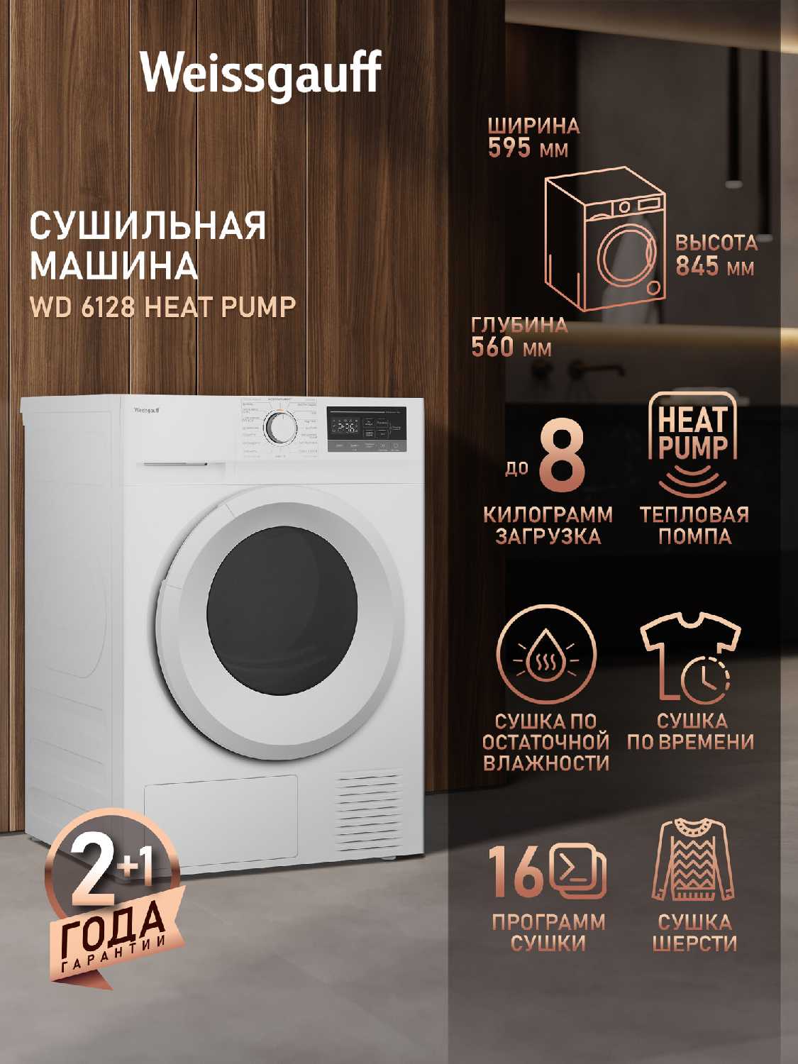 Отзывы о Сушильная машина Weissgauff WD 6128 B Heat Pump