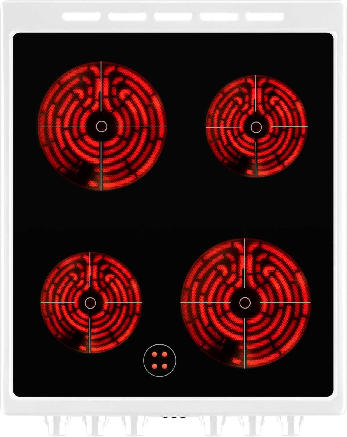 Конфорки нагреваются очень быстро, часто за минуту, что пользователи отмечают как главное преимущество. После отключения они долго держат тепло, позволяя экономить электричество. Индикатор тепла на конфорках помогает отслеживать состояние. Однако одна из конфорок не работает при включенной духовке, о чем предупреждает наклейка. -