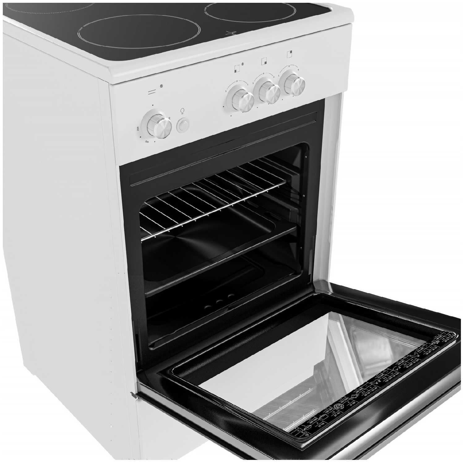 - Стеклянная дверца с двойным остеклением снижает теплопотери, а встроенные подсказки режимов готовки на внутреннем стекле упрощают использование.