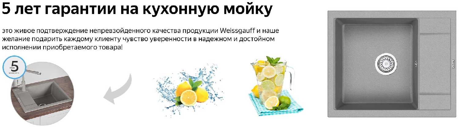Отзывы о Накладная кухонная мойка Weissgauff WG, 60х50см, искусственный гранит