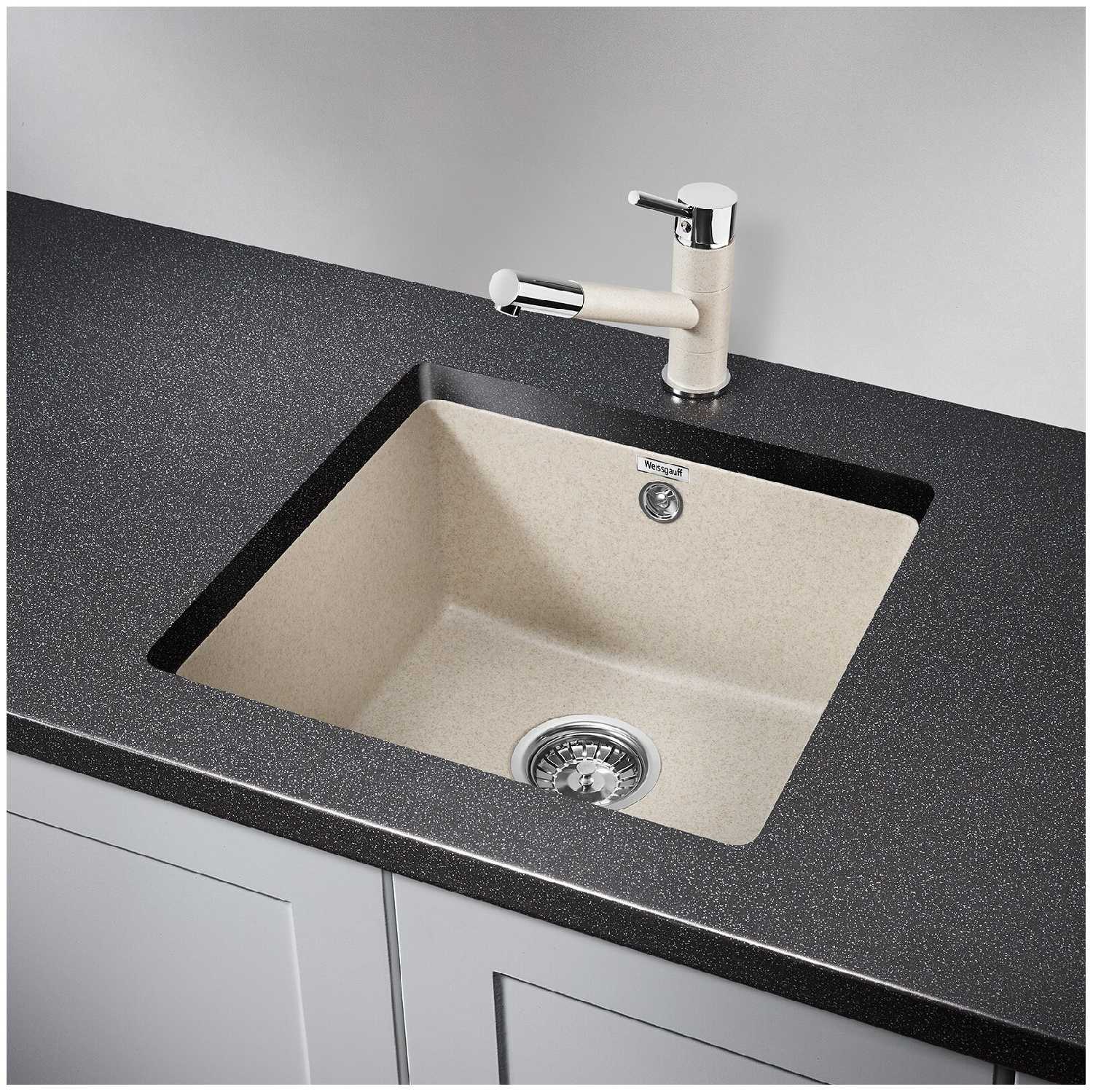 - + Отличная раковина, кремового цвета. Очень глубокая и вместительная, то что нужно на маленькой кухне. Устанавливается под столешницу