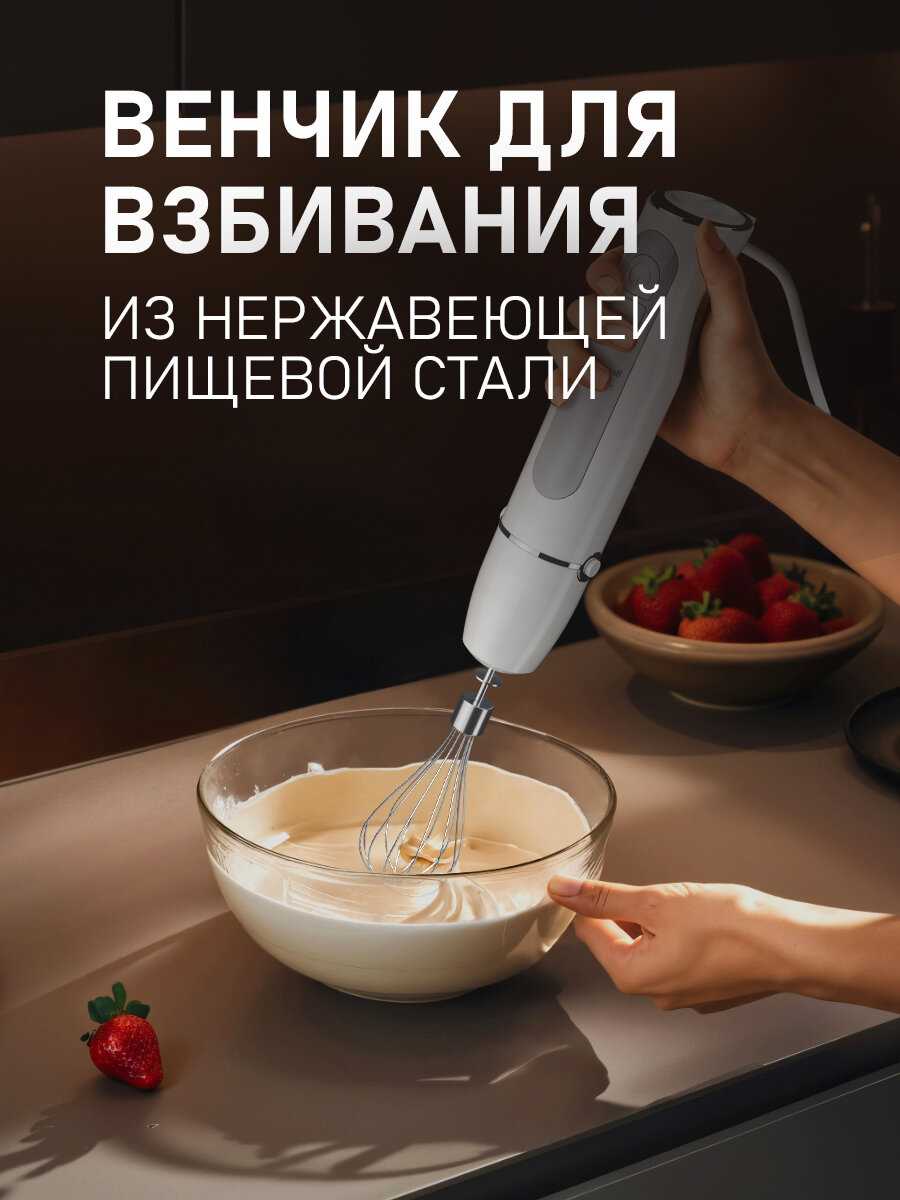 | Насадки : | венчик для взбивания, для приготовления пюре, измельчитель |