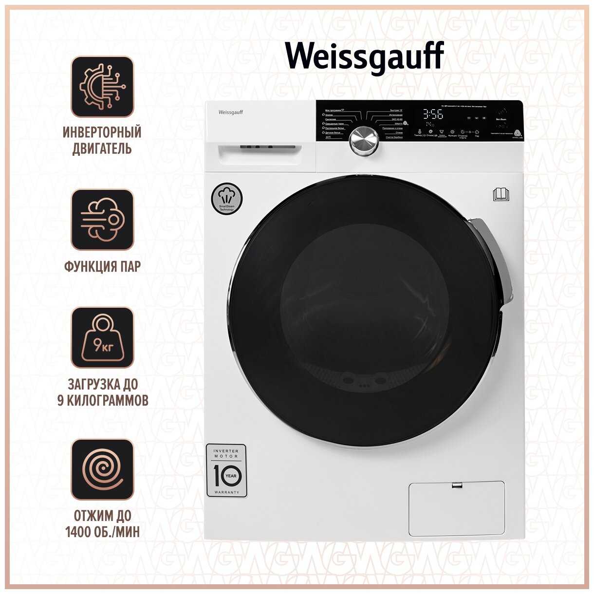 Technologic Motor BLDC, 10 лет гарантии на инверторный двигатель, функция "Пар", функция "Моя программа", тихий режим, полная защита от протечек AquaStop, программа для стирки постельного белья, программа для очистки барабана, защита от протечек 100% Аквастоп