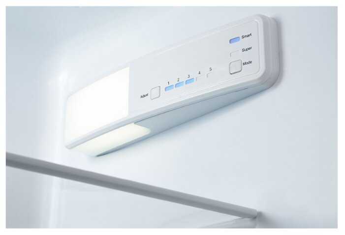 Внутри кнопки управления, можно настроить режимы, есть смарт-режим, где холодильник сам контролирует температуру.