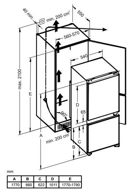 - Открывание двери на 90° обеспечивает доступ к содержимому даже при плотной встройке.
