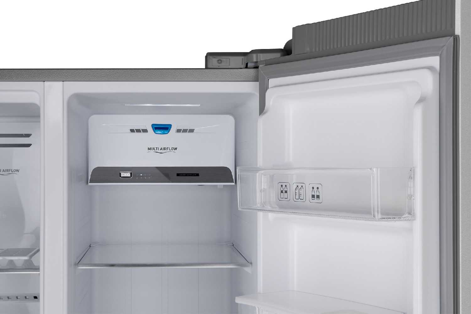 - Многодверная конструкция и удобное расположение полок/ящиков оптимизируют доступ и хранение продуктов.