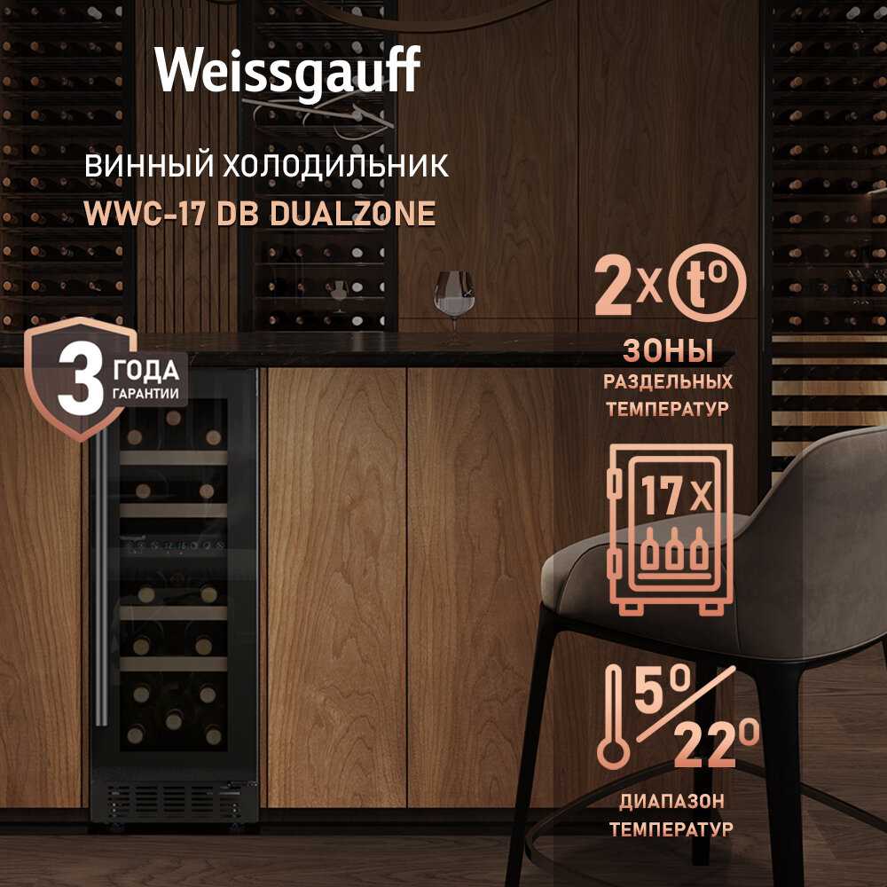 Отзывы о Встраиваемый винный холодильник Weissgauff WWC-17 DB DualZone