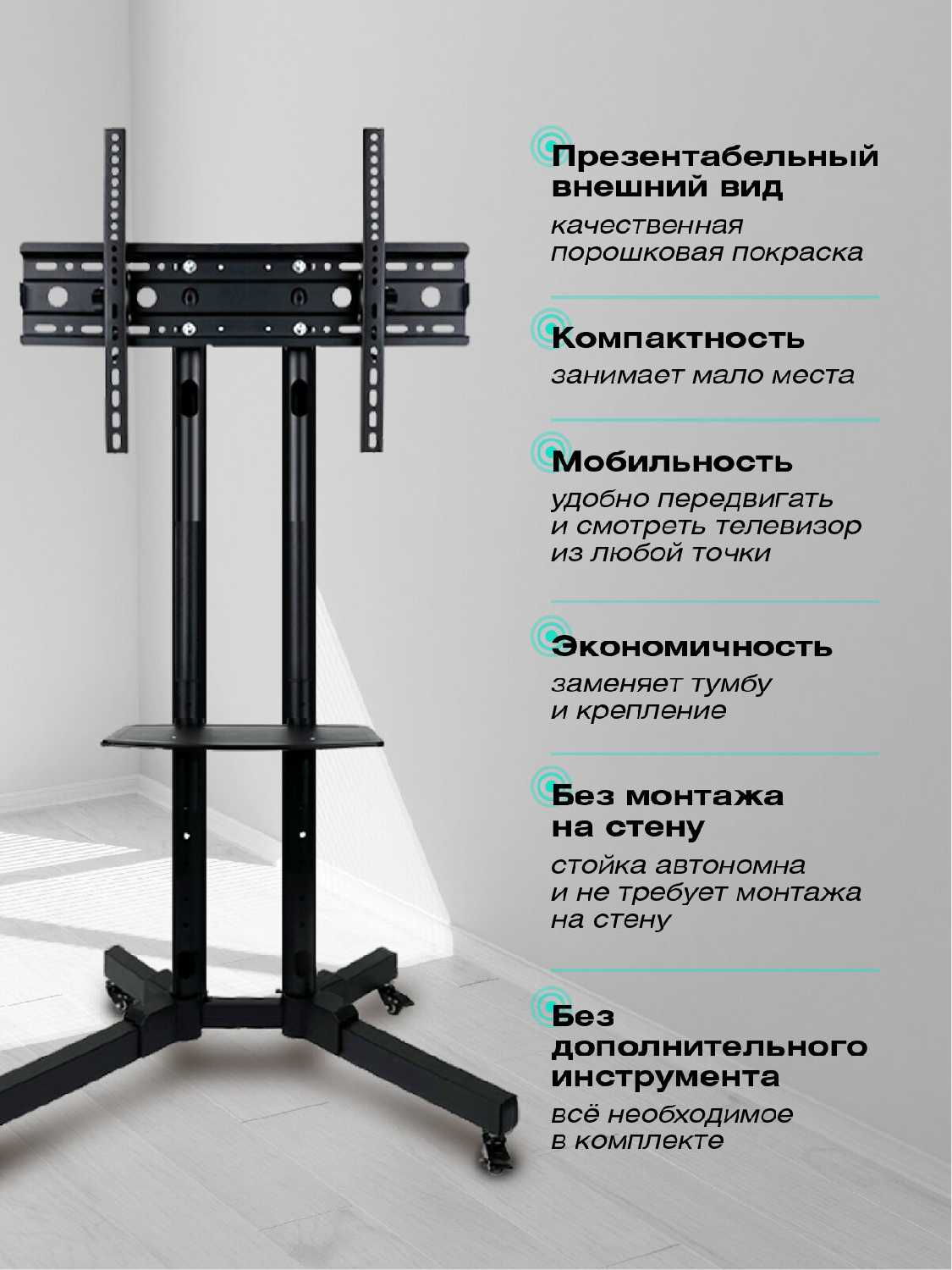 - + Неплохая стойка, все крепко держится, не болтается (телевизор 50’’). Высота подставки регулируется просто её перестановкой