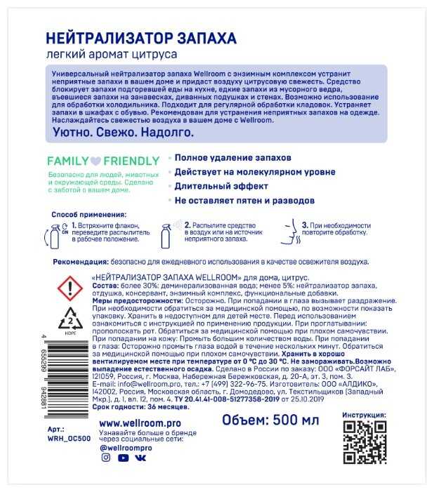 10 отзывов пользователей o WellRoom спрей-нейтрализатор запаха Цитрус 500 мл