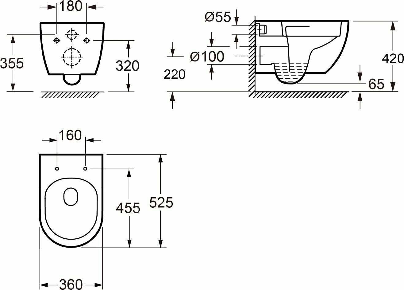- + Конструкция безободковая, что является несомненным преимуществом. Подвесной унитаз занимает меньше места, чем обычный, и визуально делает помещение просторнее.