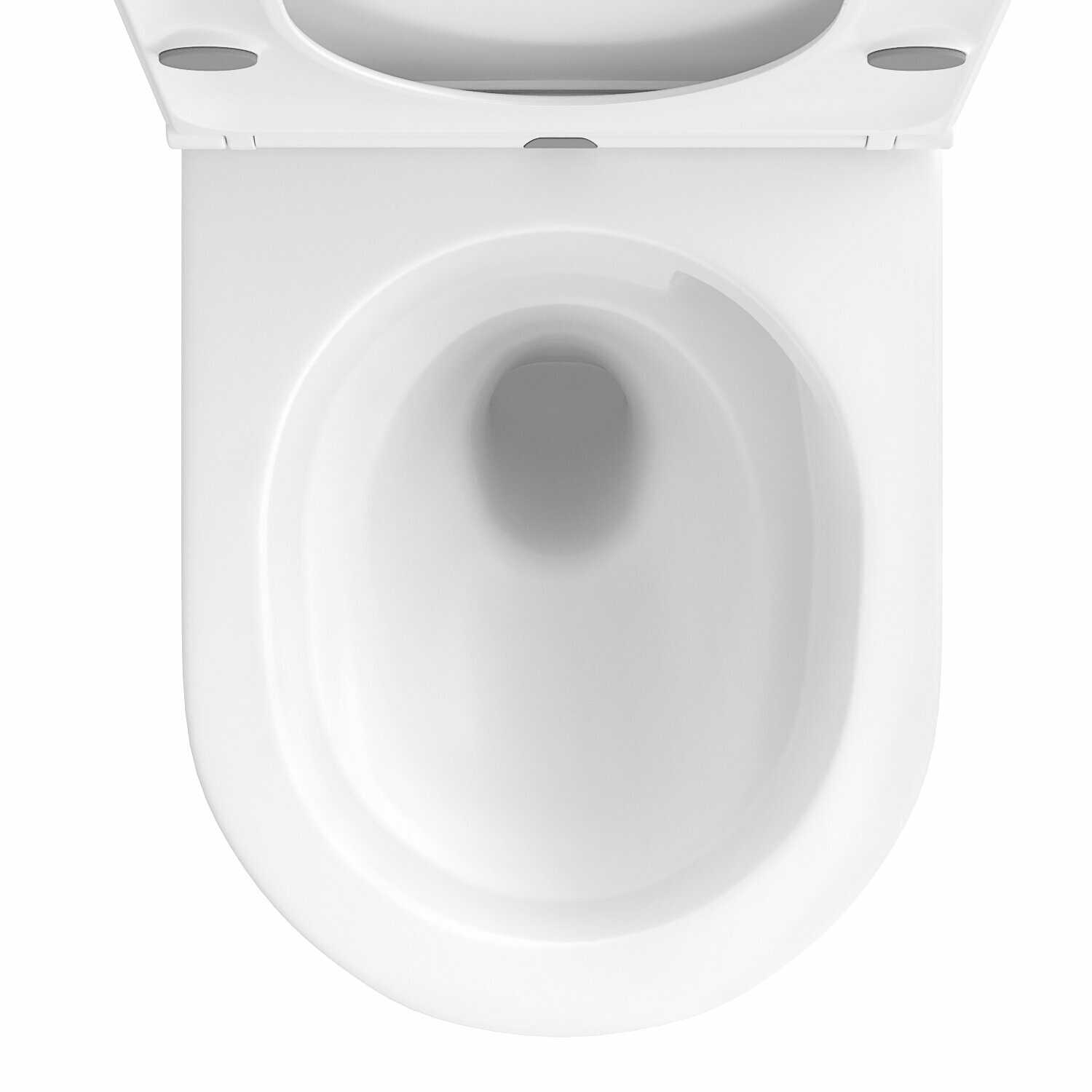 - + стоимость, актуальная форма с широкой чашой обеспечит отсутствие засоров, а это много стоит .безободковый а значит более гигиеничный