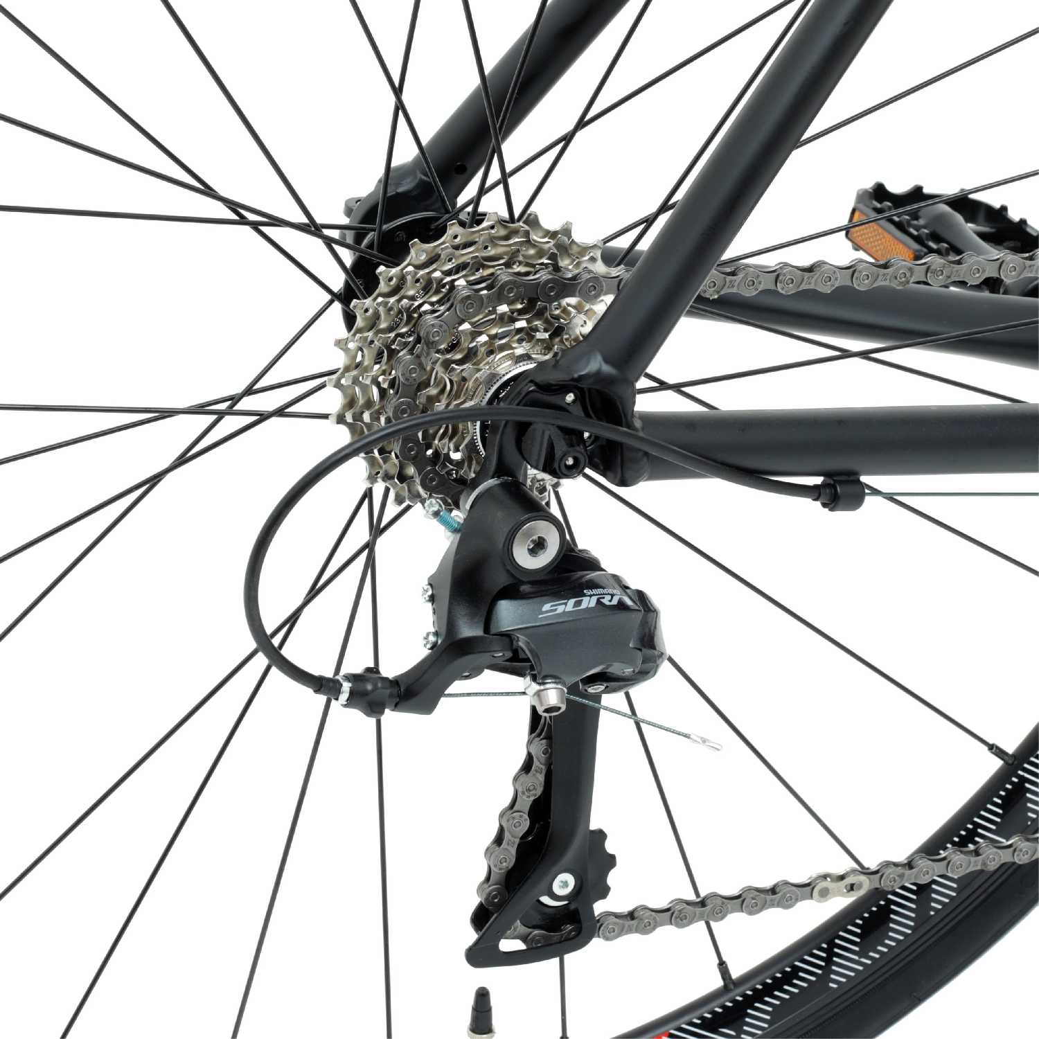 в целом отличный сбалансированный велосипед, позволяет без особых проблем с навыками базовых настроек того же горного велика произвести сборку и настройку из коробки, упаковка отличная, все что можно и нужно было защитить, либо в пене, либо с пластиком, так что не притёрлось и не поцарапалось, сравнивать именно с шоссейными не с чем(первый, до этого только мтб) но практически все оказалось так, как ожидалось, вел провоцирует на скоростную езду, диапазона передач хватает для всего, в горку буквально прет, изначально думал что по плохим дорогам всю душу вытрясет, но все терпимо, всепролазность очень не дурная (в разумных пределах конечно же), внешний вид радует глаз, заглаженые швы рамы приятны глазу, переключения четкие, правда на руле фактически отсутствует место для навески чего либо по классической схеме, однозначно нужно приобретать дополнительные крепления для велокомпа, можно конечно временно расположить на выносе, но читаемость посредственная в этой точке. Резюмирую - хороший добротный велосипед для знакомства с дисциплиной, совершенство не знает предела, но даже легкий апгрейд - замена резины на более качественную дадут заметный эффект