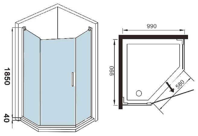 - + Поддон из искусственного мрамора, распашная дверь, минимализм дизайна.