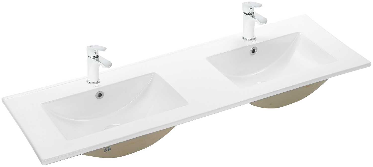 - + Двойная раковина. Однородный белый цвет. Ровные поверхности (встала на тумбу без зазоров с креплением герметиком). Места установки смесителей ровные. Смесители...