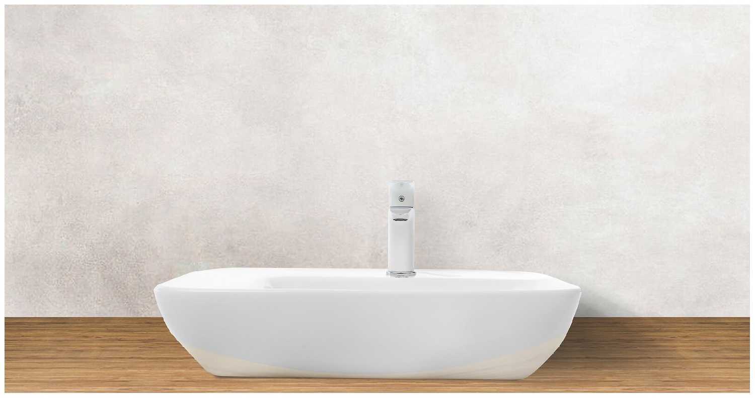 Раковина как бы стоит на столешнице. Есть бортик, но размер полезной для гигиенических процедур части от этого не страдает. Гладкая белая поверхность, и эти особенности формы напоминают воздушное облачко. Дизайн притягивает взгляды всех знакомых.