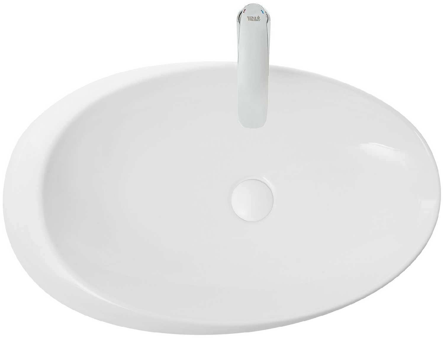 Выбирали фаянсовую раковину с женой, ей она сразу понравилась. Раковина овальная, но ассиметричной формы. Устанавливал сантехник сразу на столешницу...