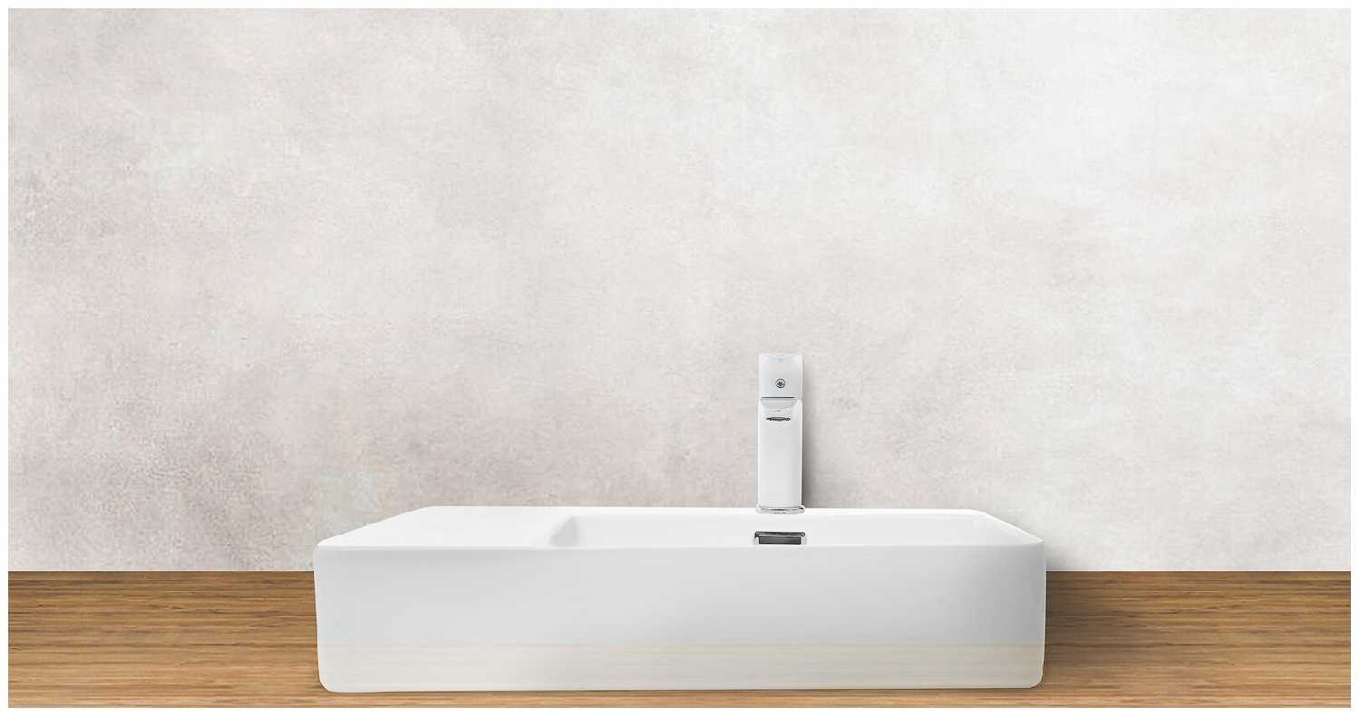 Раковина внушительных габаритов, накладная. Смотрится надежно, но достаточно элегантно. Удобно, что уже были сделаны отверстия под смеситель и перелив...