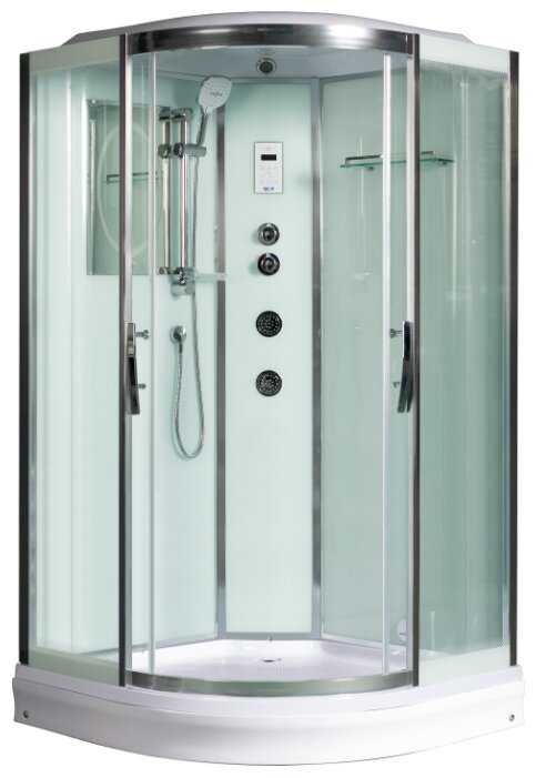 - + Тропический душ, вентиляция, гидромассаж, радио, подсветка, полностенная